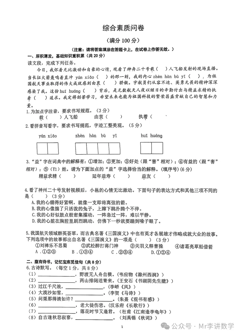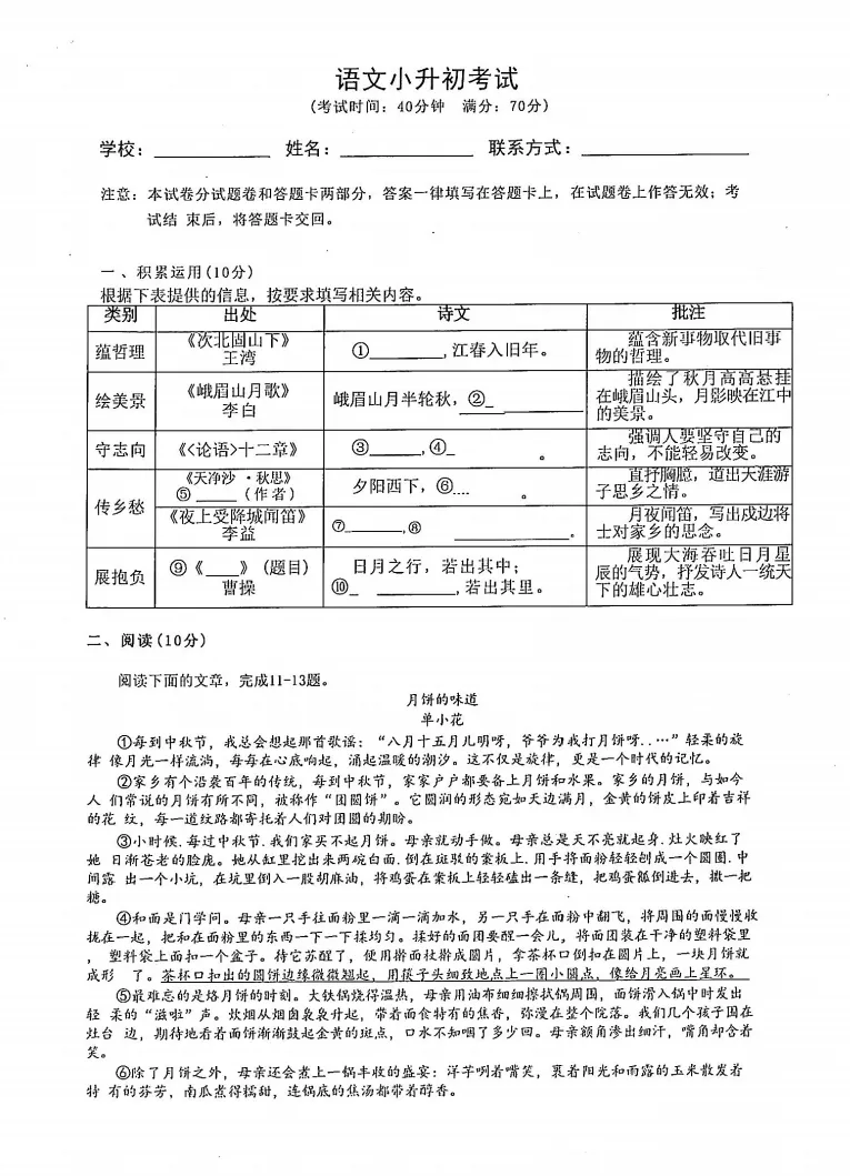 考察语数英三科,数学占比最高,要考复杂的分数运算,语文涉及文言文,英语词汇量要求颇大,整体来说都远超小学水平。