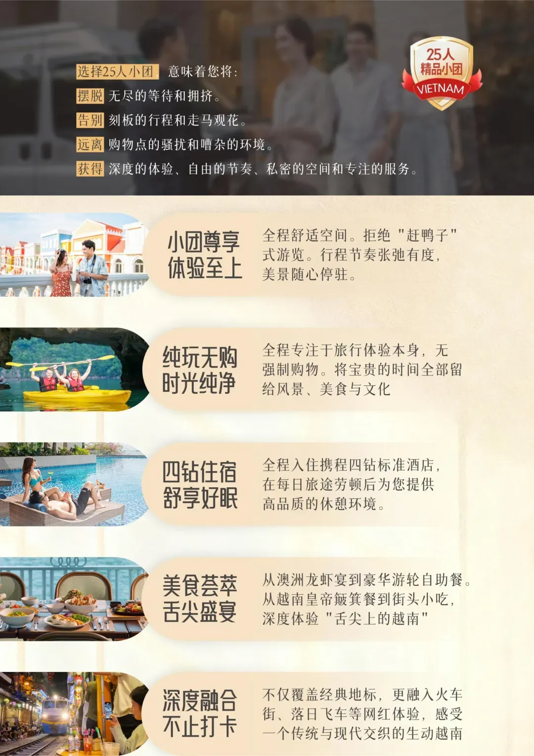 2、旅游用车:国内段空调旅游车和越南段空调旅游车(按人数安排车,座位是先到先坐,保证每人一正座);人数少的情况下可能出现师兼导,敬请谅解)