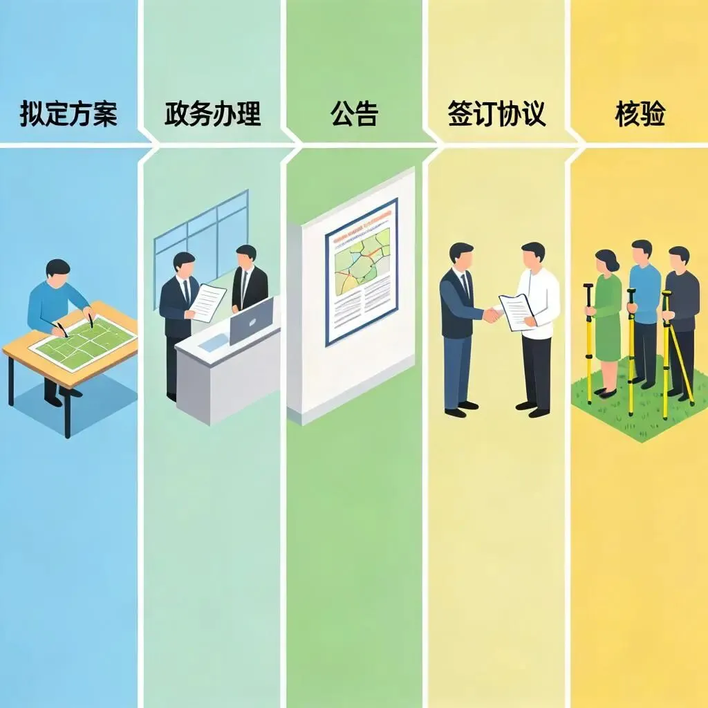 4.公告:乡镇和集体经济组织公告方案,不少于 10 天,异议反馈至乡镇。