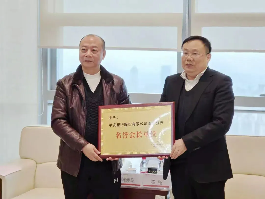 会谈中,陈佩东介绍了广西广东商会的工作进展及未来规划,对平安银行南宁分行长期以来对商会及会员企业的金融支持表达衷心感谢,并希望分行继续对商会及相关企业的发展提供金融赋能,特别是初创企业、高新技术产业、农业、科技企业等项目,助力商会企业快速成长及转型升级。 陈亮行长对广西广东商会一行的到访表示热烈欢迎。他指出,平安银行南宁分行始终秉持“服务实体经济,支持民营经济”的宗旨,高度重视与商协会平台的合作。未来,分行也将组织团队深入会员企业开展调研评估,结合企业实际情况及项目发展前景,定制个性化授信方案,为商会企业的快速发展提供坚实的金融支撑。同时,双方可在传统行业、零售业、AI、农业、高新科技、低空经济等板块加强合作,助力企业在新一轮产业变革中抢占先机,实现高质量发展。 为进一步深化互信合作,广西广东商会现场授予平安银行南宁分行“名誉会长单位”称号。行长助理龚萍也同时表示,分行将以此为契机,建立常态化沟通机制,细化合作路径,推动金融服务更精准,更高效地触达企业一线。广东商会秘书长张文茹,商会相关企业负责人就银企联动机制与银行进行了座谈交流。