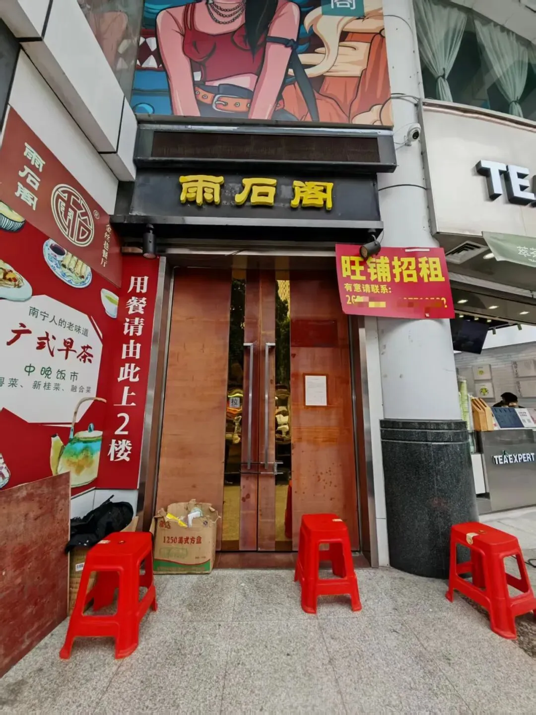 华星城的外墙上,“雨石阁”的招牌依然高悬。