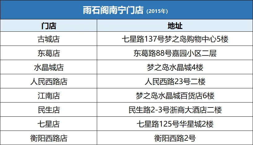 ▲2015年,雨石阁有8家门店
