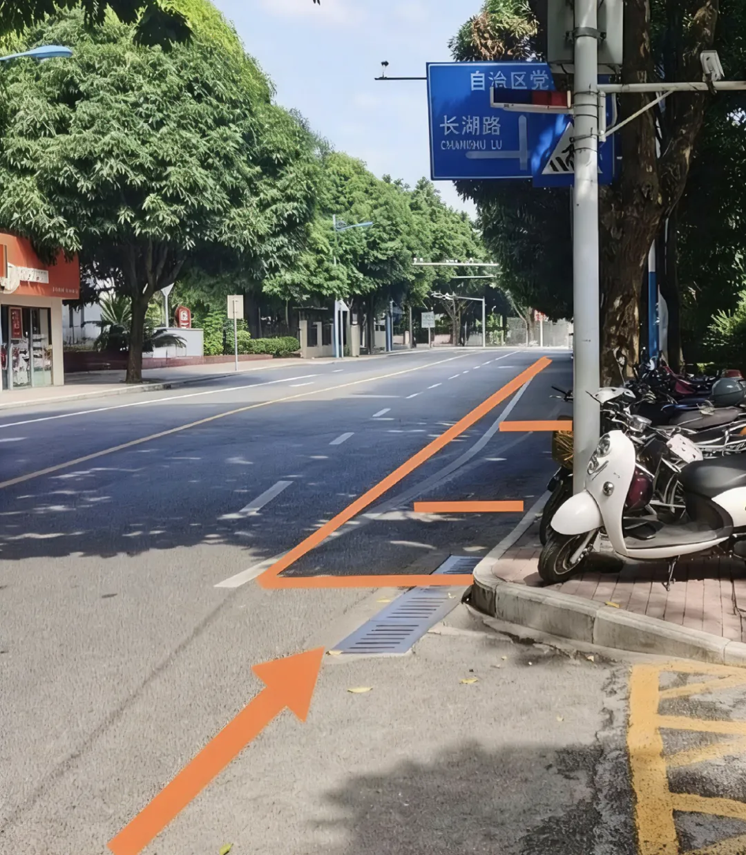 学校南门直通新竹小区51栋、52栋楼前通道,无停车区域,建议步行。