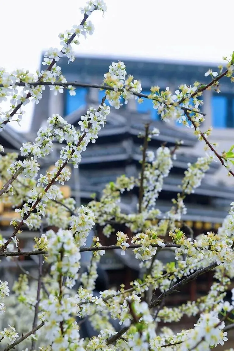 广西民族博物馆的民族村李子花已经绽放,每一枝桠长满李子花,独属春日的白色浪漫,随风落下如南方的春日之雪,许你一路繁华,安然度岁。