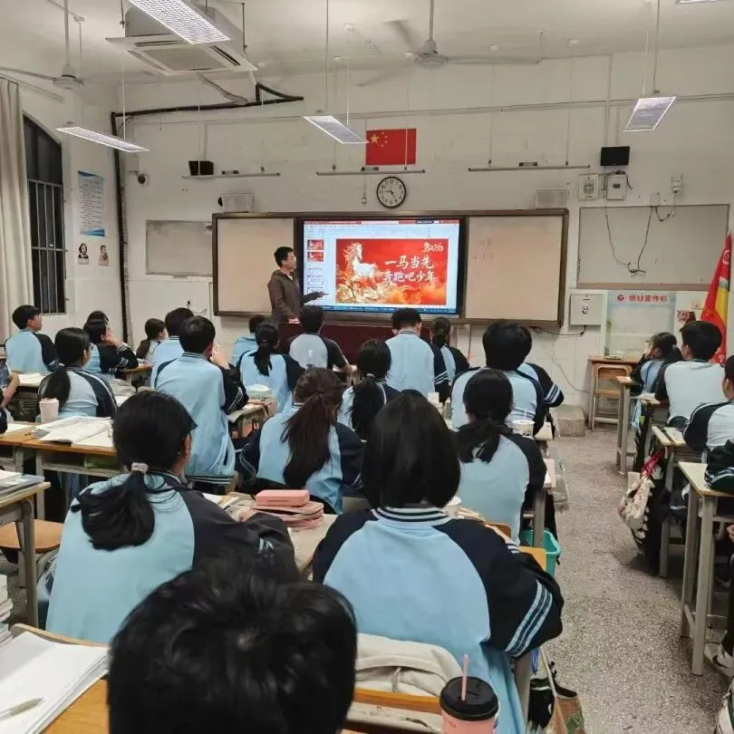 2月24日晚,各年级有序开展了开学思政第一课,为新学期成长筑基。高一、高二年级各班紧扣马年特性,班主任们聚焦“收心归位、蓄力奋进”的核心,温情提醒同学们迅速调整状态,告别假期松弛,“马上收心”投入校园学习生活;同时以马年精神为指引,鼓励大家在新学期拿出“马”力全开的劲头,脚踏实地、奋勇争先,将节日的喜悦转化为学习的动力,不负时光、不负韶华。班会课上,各班级还组织学生认真学习宿舍管理相关条例,强调安全要点,引导同学们养成文明住宿、互助友爱的良好习惯,共同营造整洁有序、温馨和谐的宿舍氛围。高三年级各班则结合高考备考进度与实际情况,开展特色主题班会课,或聚焦高考冲刺规划,明确阶段性目标;或开展压力疏导交流,分享备考心得;或强化励志教育,凝聚奋进力量,为后续高效备考、全力冲刺筑牢思想根基。
