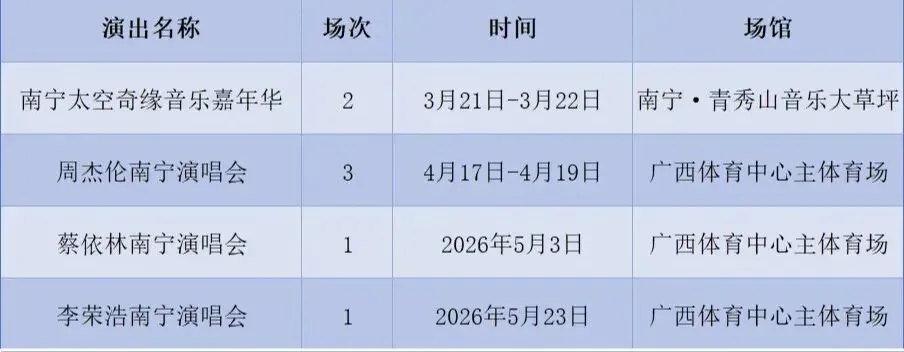 从音乐节到天王天后,青秀山、广西体育中心连番开唱。