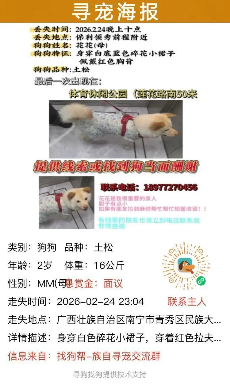 务必使用能完整展示狗狗全貌的清晰近照(彩色最佳),文字信息包括:走丢日期、走丢具体地点、宠物特征、主人联系方式,*悬赏金额(最好明确赏金,这样话能让路人更有动力寻找)。