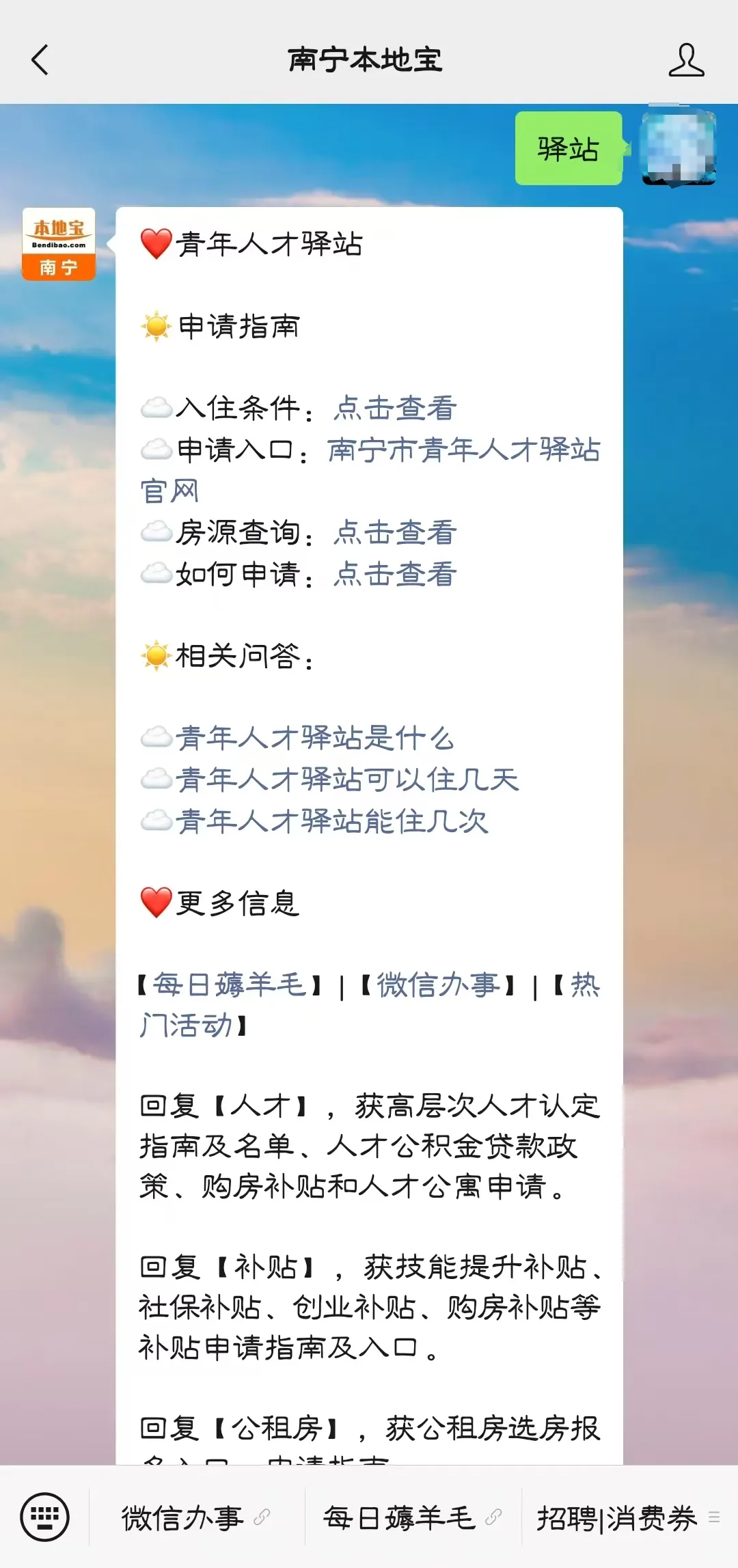 篇幅有限,以上为部分驿站名单,详细房源信息可以在南宁本地宝公众号微信对话框回复【驿站】即可获取查询入口。