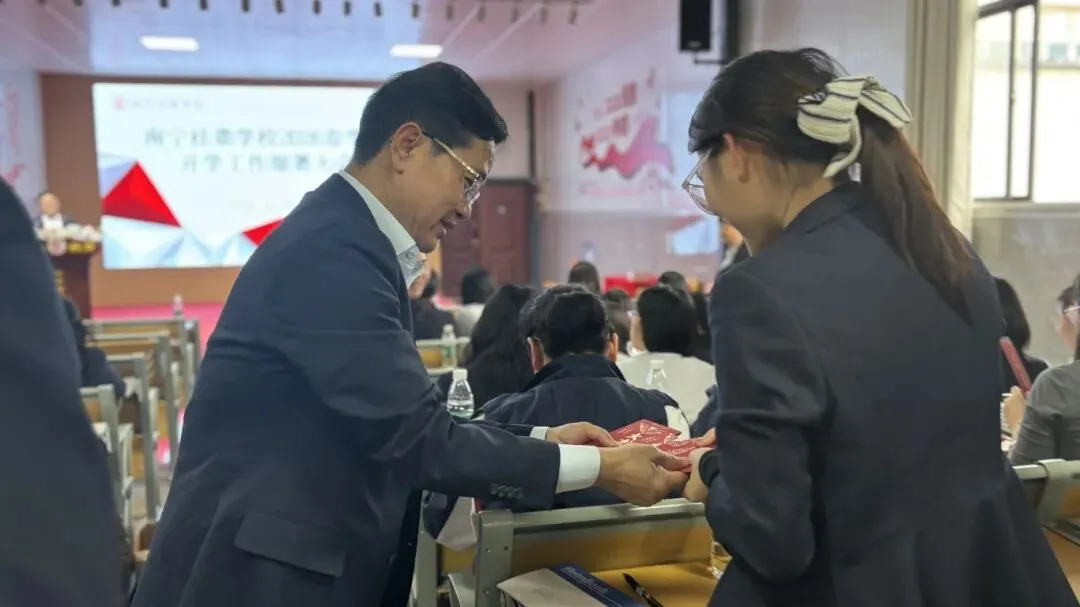校长助理兼办公室主任苏晓文围绕新学期的具体工作安排展开,逐周讲解了从开学准备、教学常规、德育活动、大型活动、招生工作到期末复习与毕业典礼等核心任务。同时,会上重申了学校的“九项行动纲要”与“八项注意”,并重点强调了教师职业行为的“十四项一票否决”底线,要求全体教职工严格遵守,以确保工作顺利、平安开展。