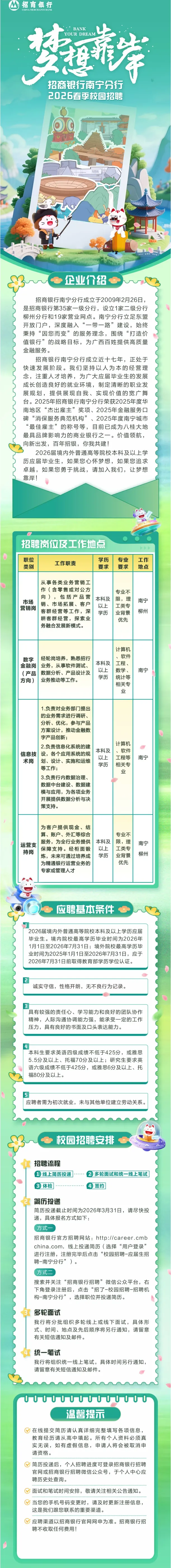 南宁、柳州有岗|招商银行南宁分行2026春季校园招聘