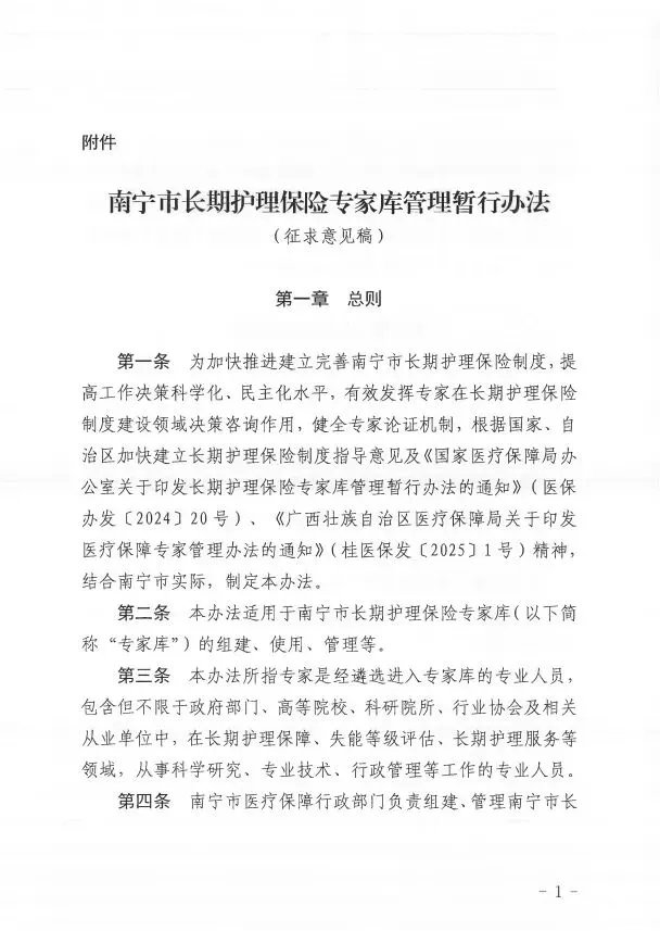 南宁市医疗保障局:征求《长期护理保险专家库管理暂行办法(征求意见稿)》