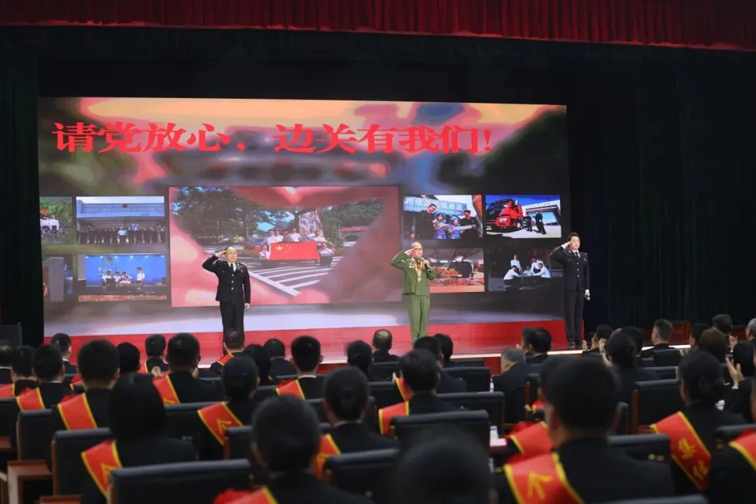 老中青三代海关人同台开展主题宣讲。南宁海关退休干部、2025年度广西壮族自治区离退休干部先进个人廖寨祯同志倾情讲述自己从战场到国门的忠诚坚守;中年关员上台分享数十载扎根边关的奉献岁月;青年关员接力作答、传承使命,以初心践诺,以担当铸魂,让国门精神薪火相传。