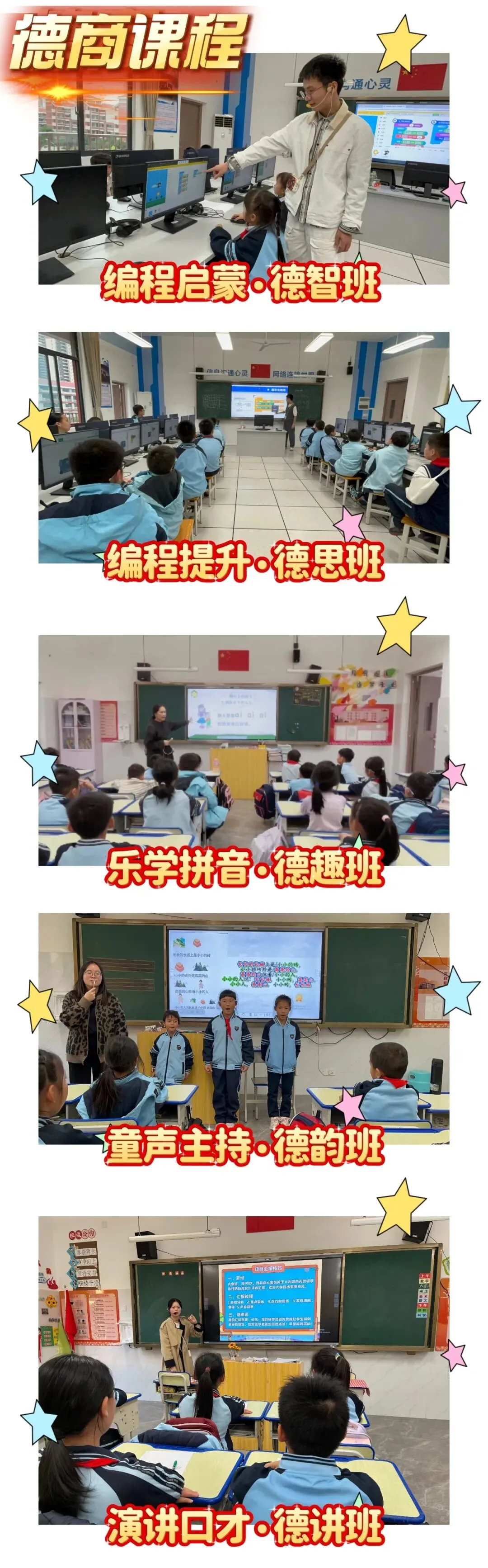 秉持办学理念,本学期兴趣课程全面升级,紧扣德商、智商、体商、灵商四商融合育人目标,开设编程、数学思维、阅读理解、科学实验、演讲、篮球、足球、跳绳、双截棍、美术、舞蹈等丰富课程。