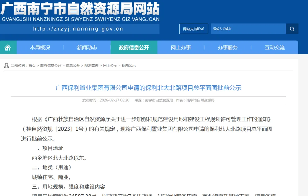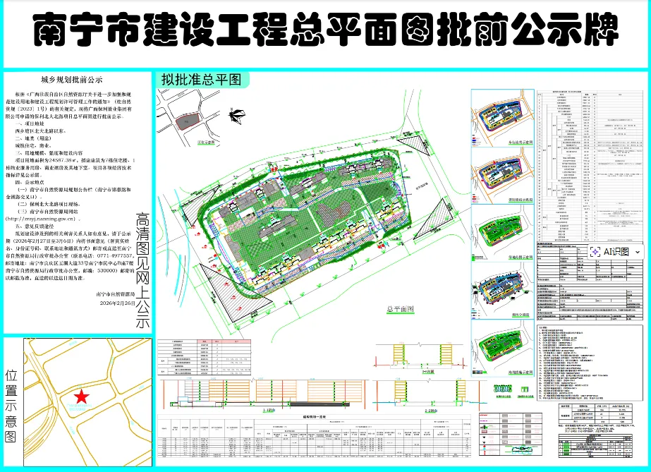 近日,南宁市自然资源局发布了保利北大北路项目总平面图批前公示。
