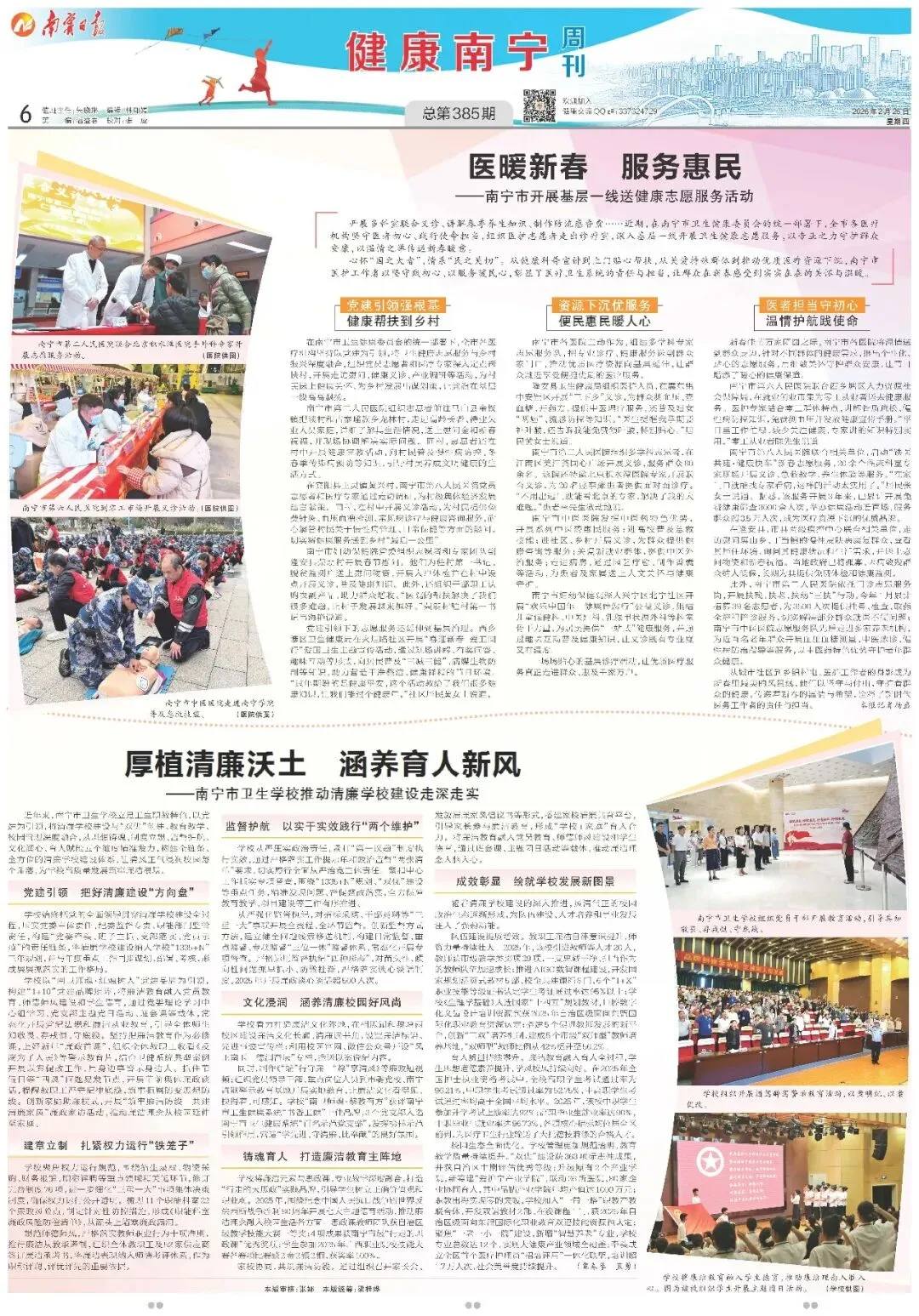 校园生态全面优化。学校管理更加规范透明,教育教学质量持续提升。“双优”建设获363项标志性成果,并获自治区中期评估优秀等级;升级原有2个产业学院,新筹建“爱护宁产业学院”,联动36所医院、80家企业协同育人,其中晶钻产业学院年均产值达1000万元;职教出海实现零的突破,学校加入“一带一路”职教产教联合体,开发双语教材2部、在线课程1门,获2025年自治区级面向东盟国际化职业教育双语技能资源包认定;聚焦“一老一小一院”建设,新增“智慧养老”专业,学校专业总数达12个,实现大健康产业领域全覆盖;牵头成立全区首个医疗护理员“招培评用”一体化联盟,培训超1.7万人次,社会美誉度持续提升。