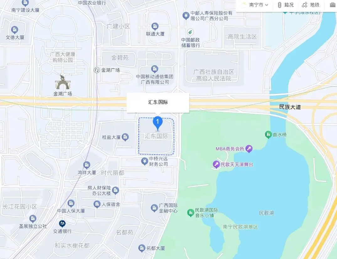 此次拍卖的这宗房产,在南宁市,绝对是黄金地段,房子所在的汇东国际,就在南宁市知名景区民歌湖的西侧而已,然后东侧就是地铁站金湖广场站。所在片区十年以前,曾经也是南宁市商业商务金融中心了,只不过现在南宁市向东发展,这里的地位没有那么重要而已。