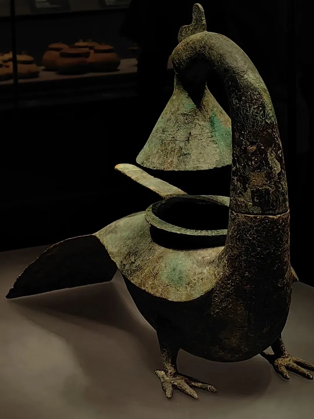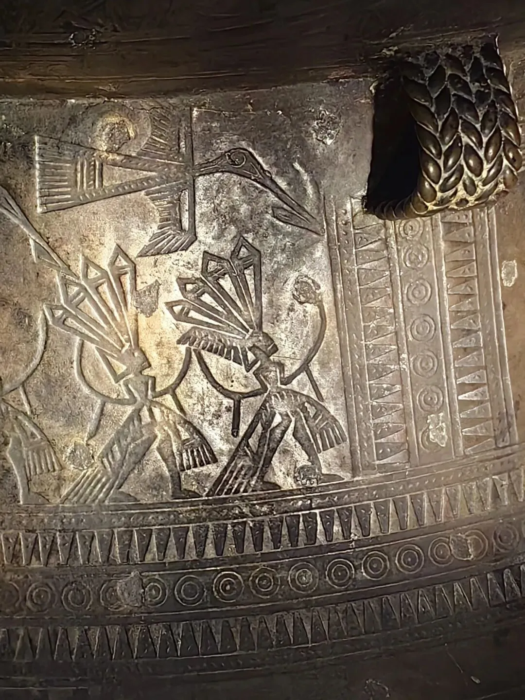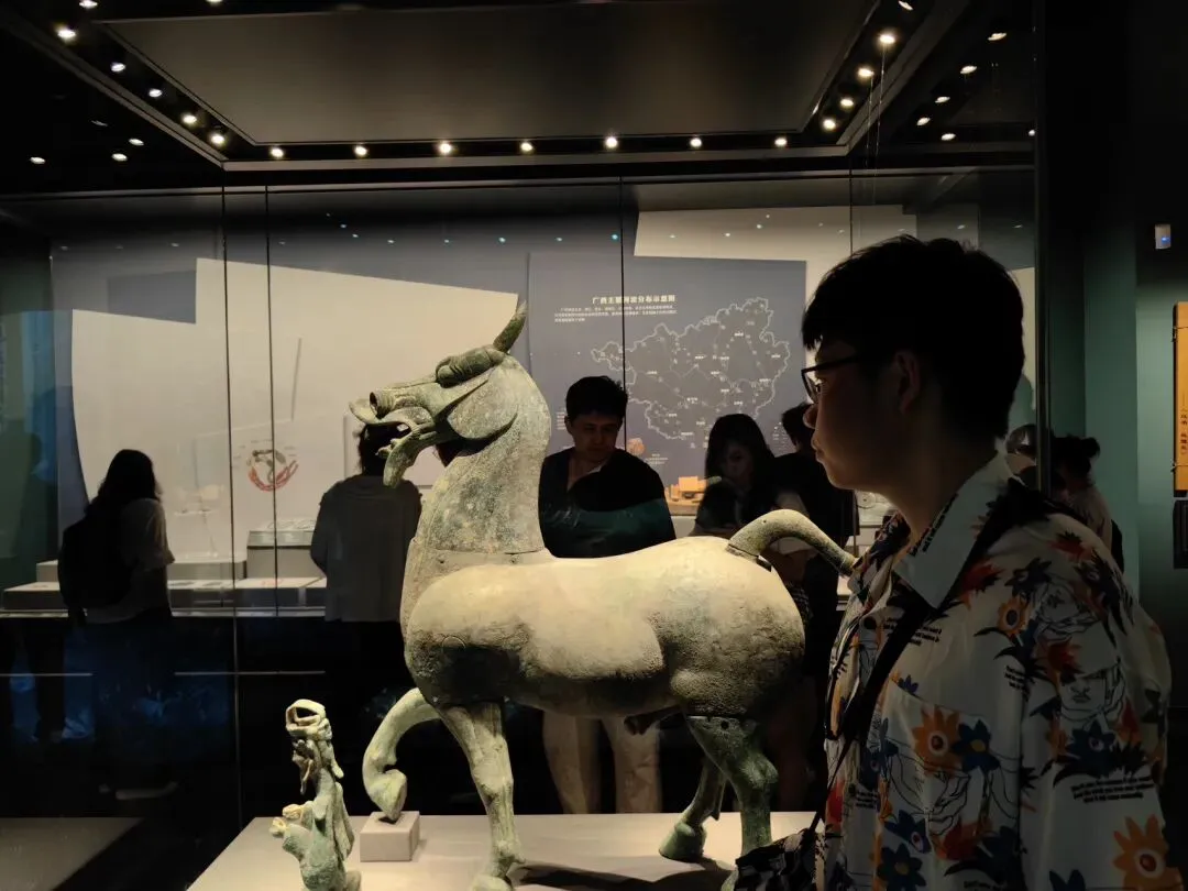 除此以外,还有石器时代楔形双肩大石铲、商代精美的兽面纹提梁铜卣、西汉时期的翔鹭纹铜鼓、漆绘提梁铜筒上的精美纹案、造型独特的羽纹铜凤灯、放大版的“广西铜奔马”——西汉大铜马等。不管是当时还是现在,都让我觉得精美绝伦。