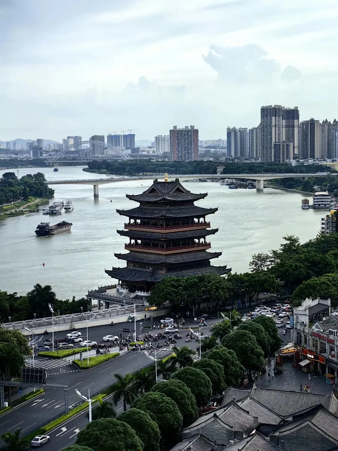 从馆里出来已是四点多,我们去喝了当地的奶茶品牌——阿嬷手作,价格略贵但味道不错。之后登高拍畅游阁与邕江。休整一番后,晚间出门,去广西大学附近的农院路夜市嗦粉,发现了炒螺蛳粉这一新奇的吃法,不分二三两,一盘带着满满锅气的炒粉端到我面前,我竟未能吃完,份量大的我以为自己来到了北方。