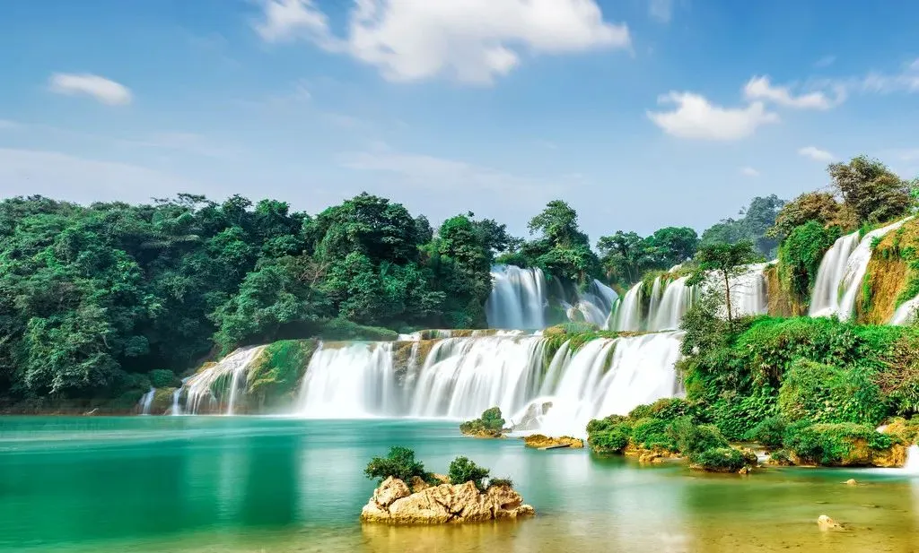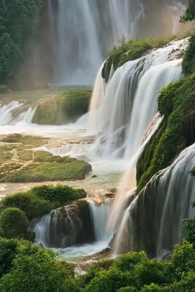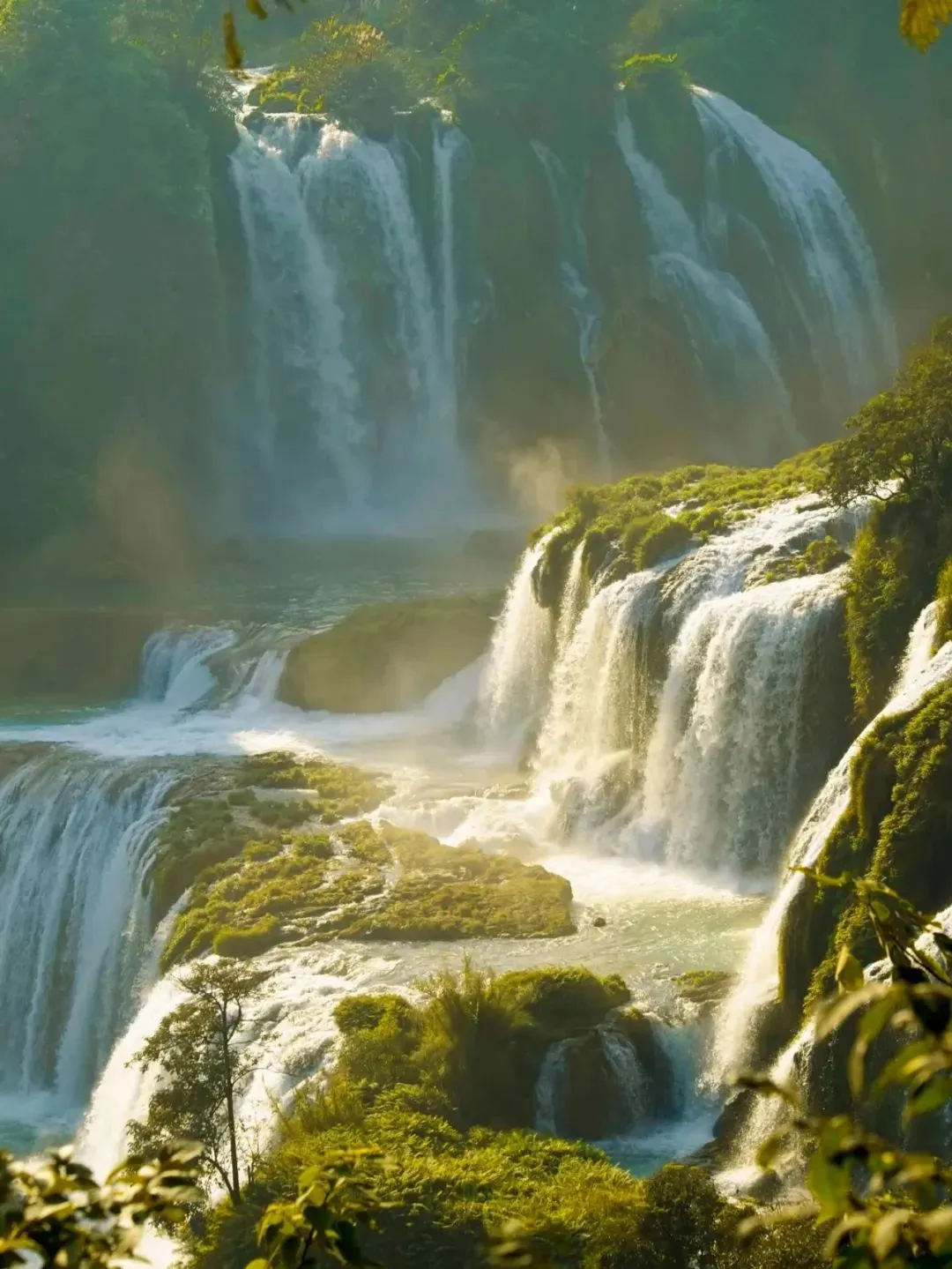 德天瀑布的美在于瀑布分三级,层层跌宕,