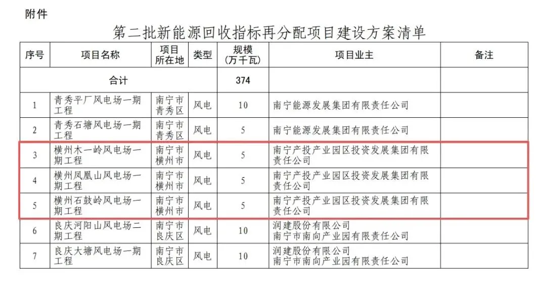 在广西新能源开发的版图中,南宁再次投下了一枚重磅“深水炸弹”!近日,随着广西壮族自治区能源局印发第二批新能源回收指标再分配项目建设方案,南宁产投集团旗下的园区投资发展集团凭借硬核实力脱颖而出,一举夺得150MW陆上风电项目指标。这不仅是南宁产投在新能源赛道的又一次关键“卡位”,更是横州市迈向绿色能源高地的里程碑时刻!