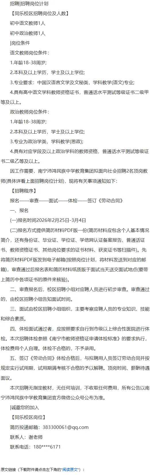 2、我们转推此文,旨在为广大求职者提供信息来源,如需删除,请联系小编。3、请各位求职者提高警惕,凡涉及收取各种费用或几乎不面试就给出录取通知,且到外地就职的招聘等,务必仔细辨别,谨防上当受骗!原文链接(下载附件请点击左下角的“阅读原文”):