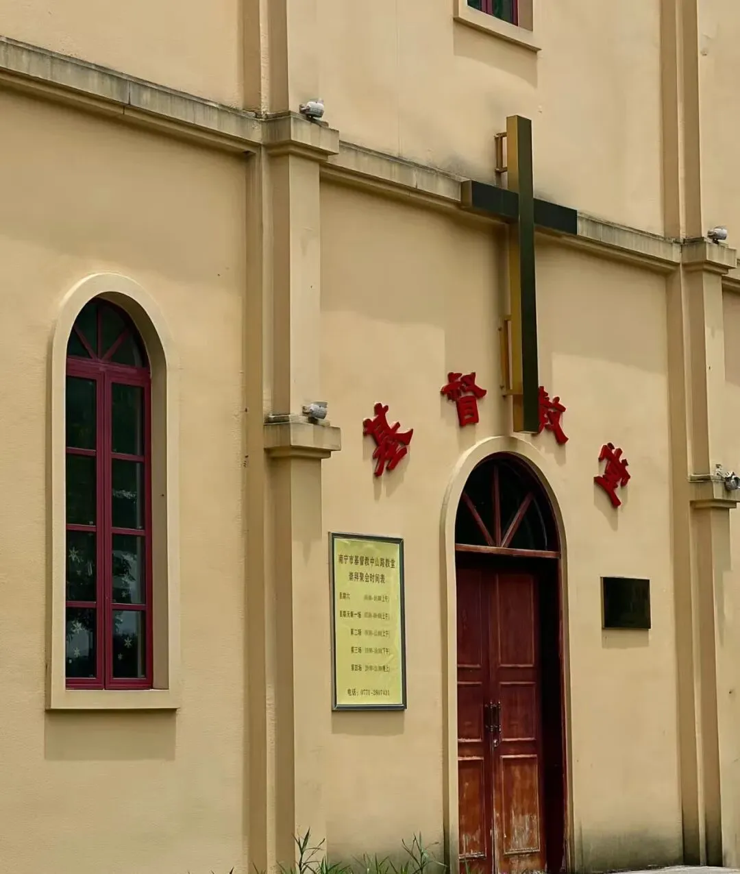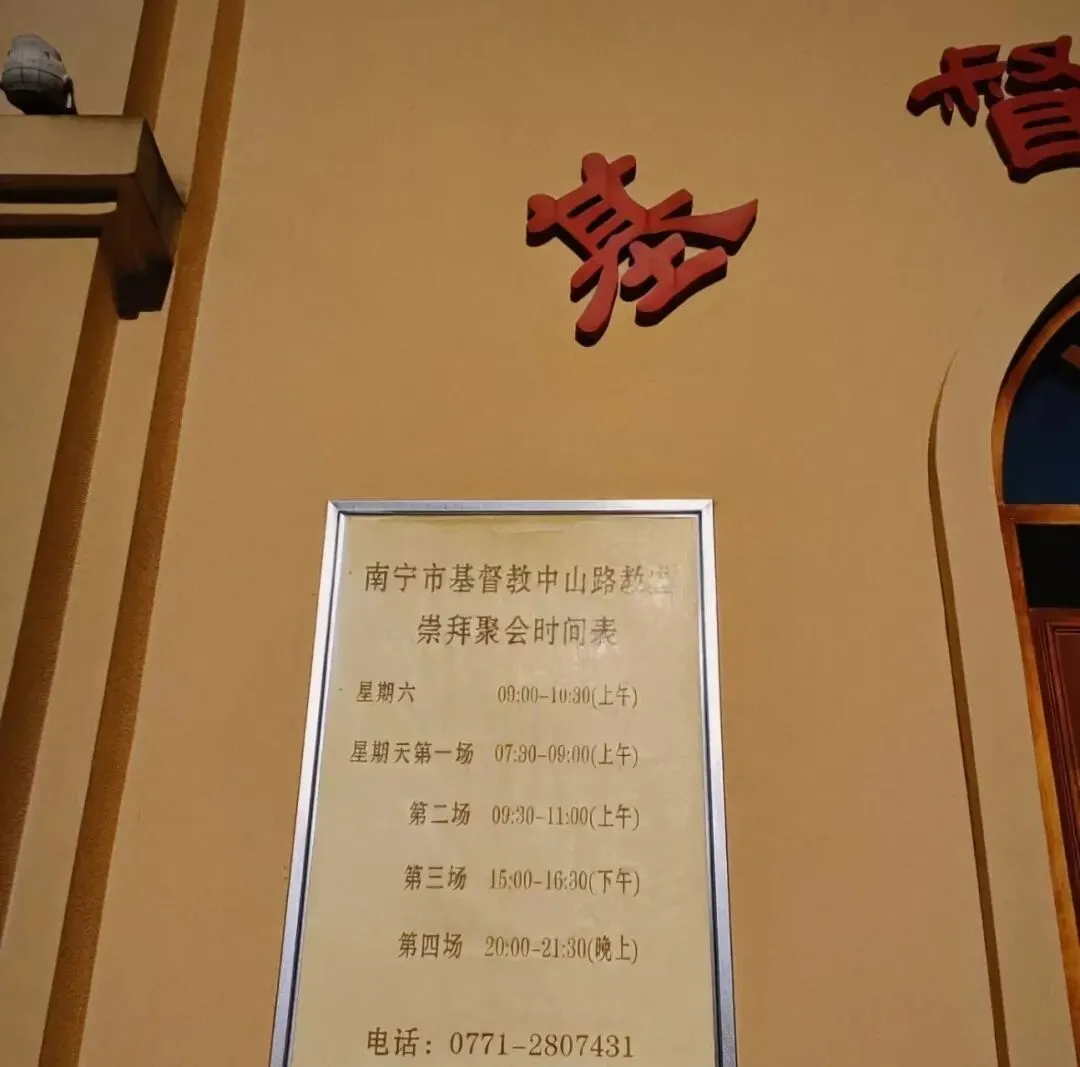 在邕江边,南宁基督教中山路教堂,周末可礼拜,下午夕阳有光影撒下来的时候很有氛围,对面可看到亭子码头。