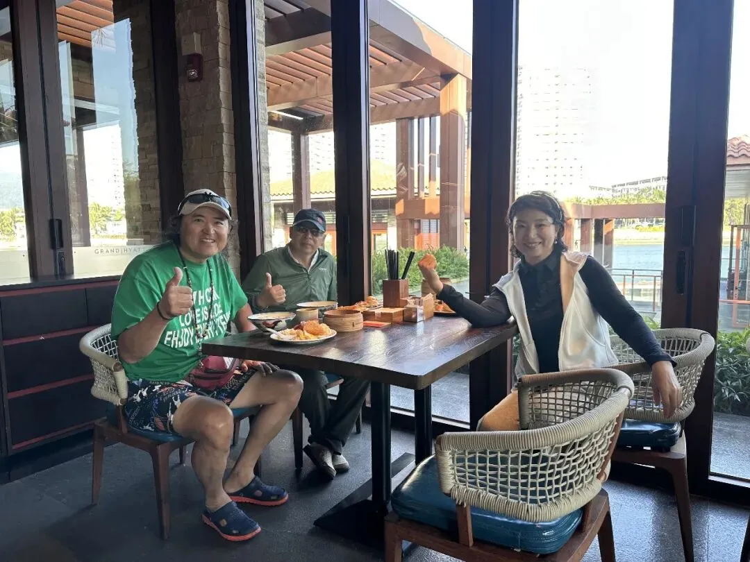 在万宁神州半岛,单位的老同事请我俩在君悦五星级酒店吃了一顿丰盛的早餐。吃惯了油条包子的我们,实在管不住自己的嘴,硬是把一天三顿饭改成了两顿。