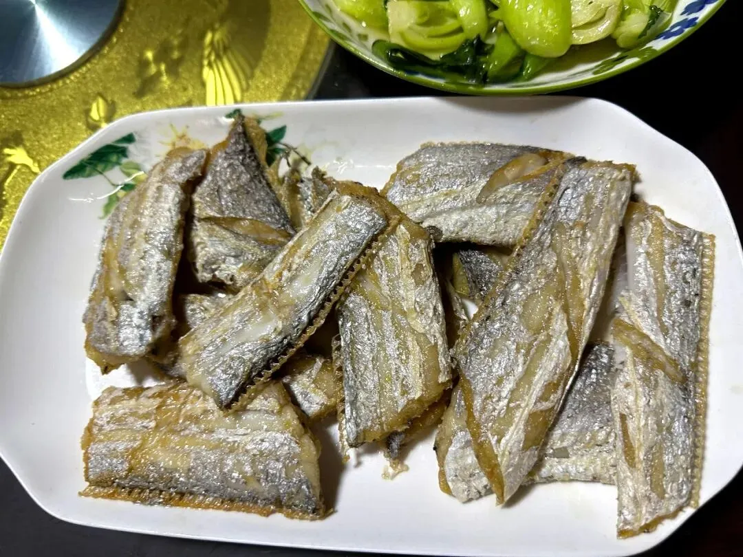 二十分钟后,一大盘金黄焦香的煎带鱼端上桌。