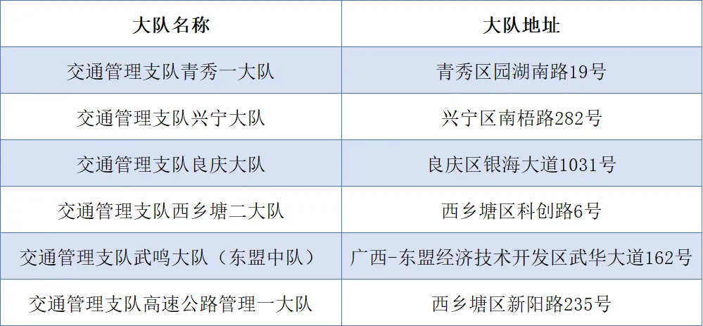 各大队窗口开办业务范围