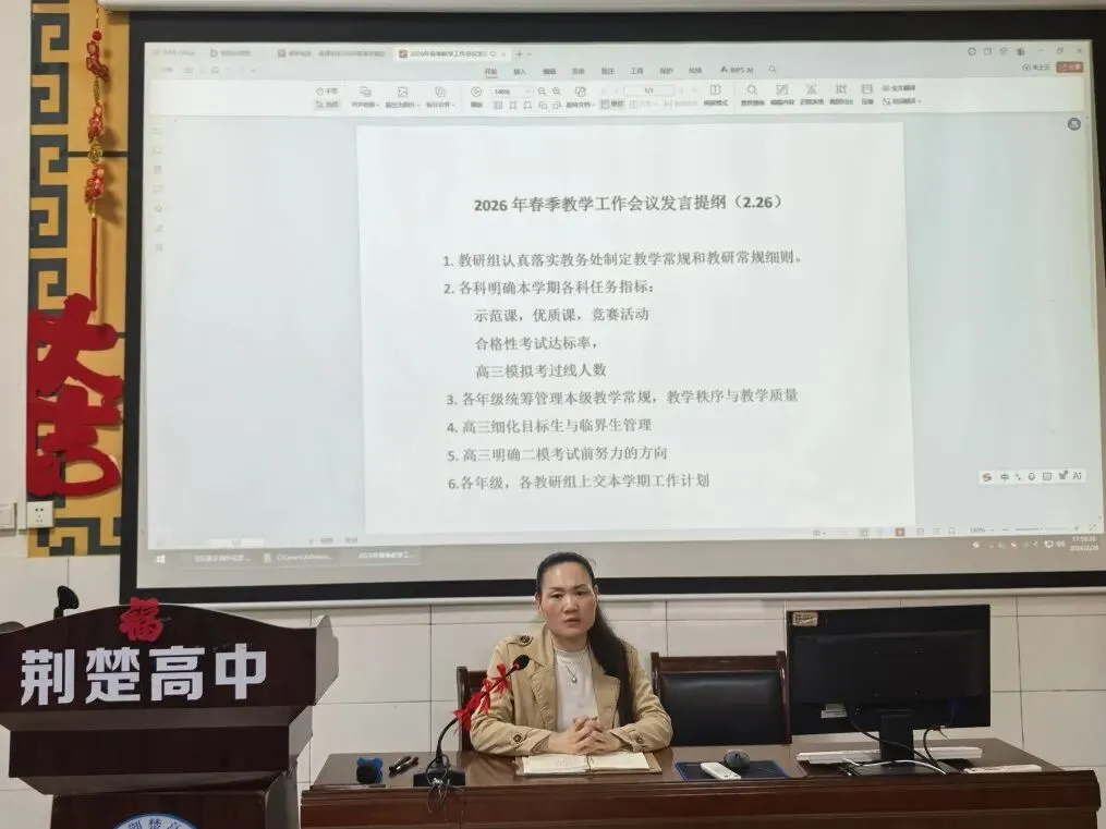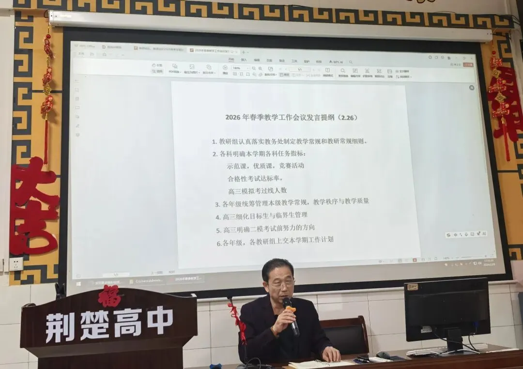 路虽远,行则将至;事虽难,做则必成。站在2026年春季学期的新起点,南宁市荆楚高级中学全体教师将以此次会议为契机,锚定教研星辰,赋能教学蓝海,共同书写教育教学的崭新篇章!