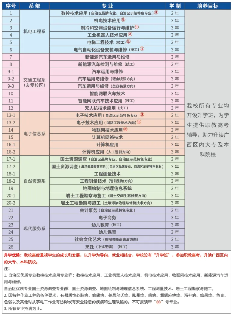💡 温馨提醒:2026年南宁机电类中职招生热度攀升,学校王牌专业名额紧张,建议广大学子和家长尽早咨询、及时报名,抢占心仪专业名额,避免错过入学机会!