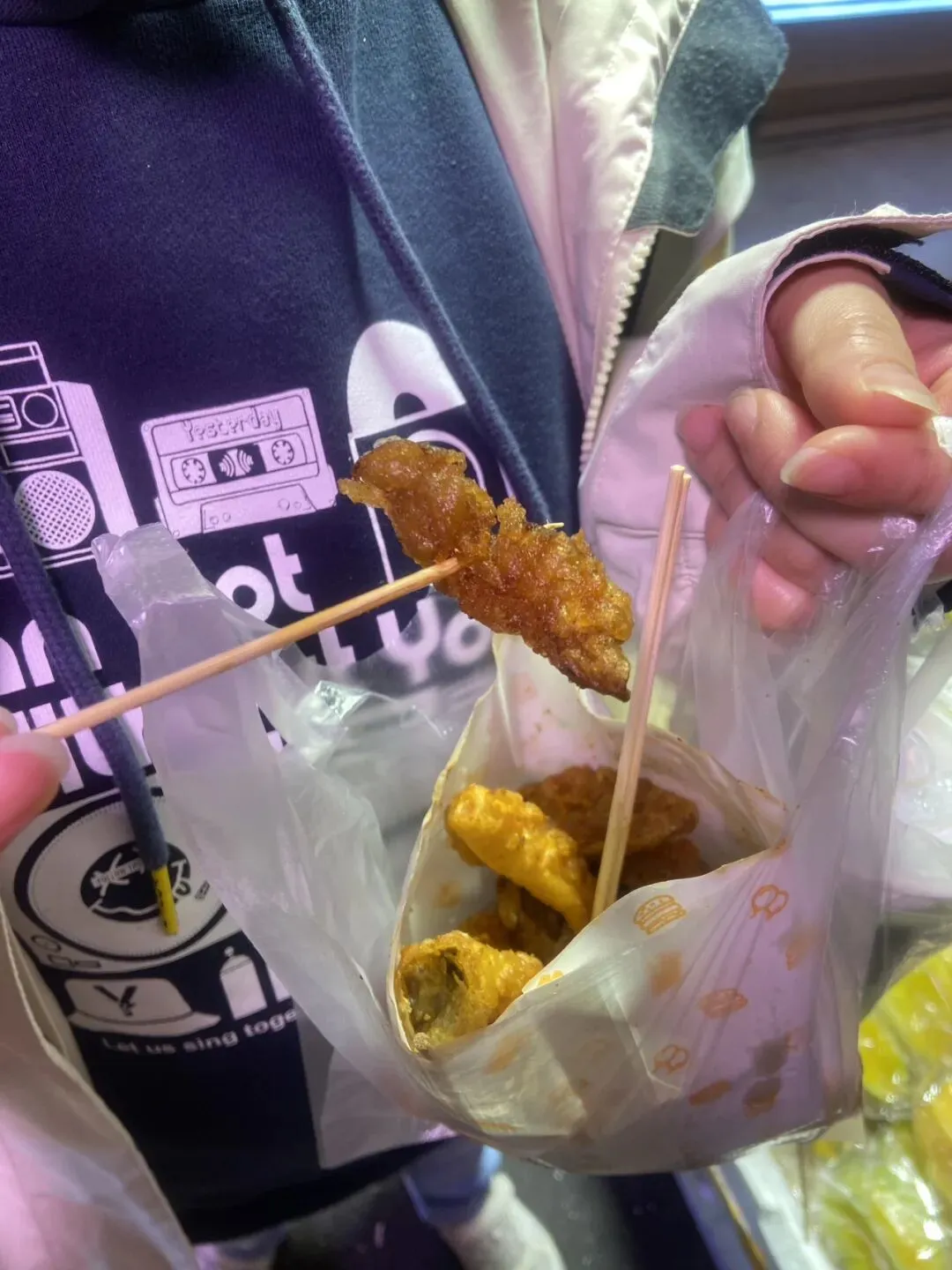 推荐没试过的吃吃!⚠️注意选那些拿生蘑菇裹粉糊现炸的店!有些店是炸好复炸的就不好吃!炸完上面撒点椒盐调味!巨香!脆脆的外表然后菇还有些汁水!鲜甜鲜甜的!很难不好吃!价格10元一份 不算贵