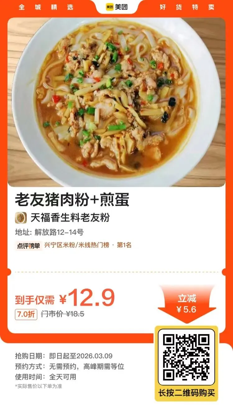 >南宁 | 天福香生料老友粉:老友猪肉粉+煎蛋