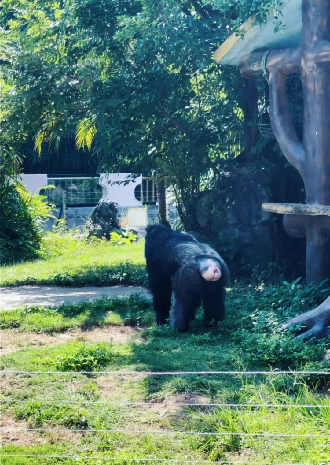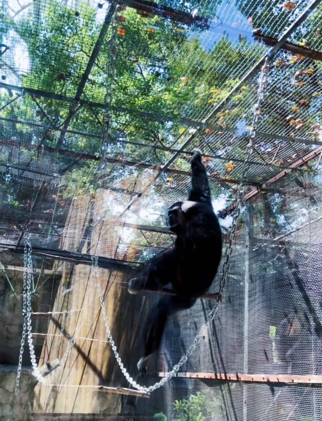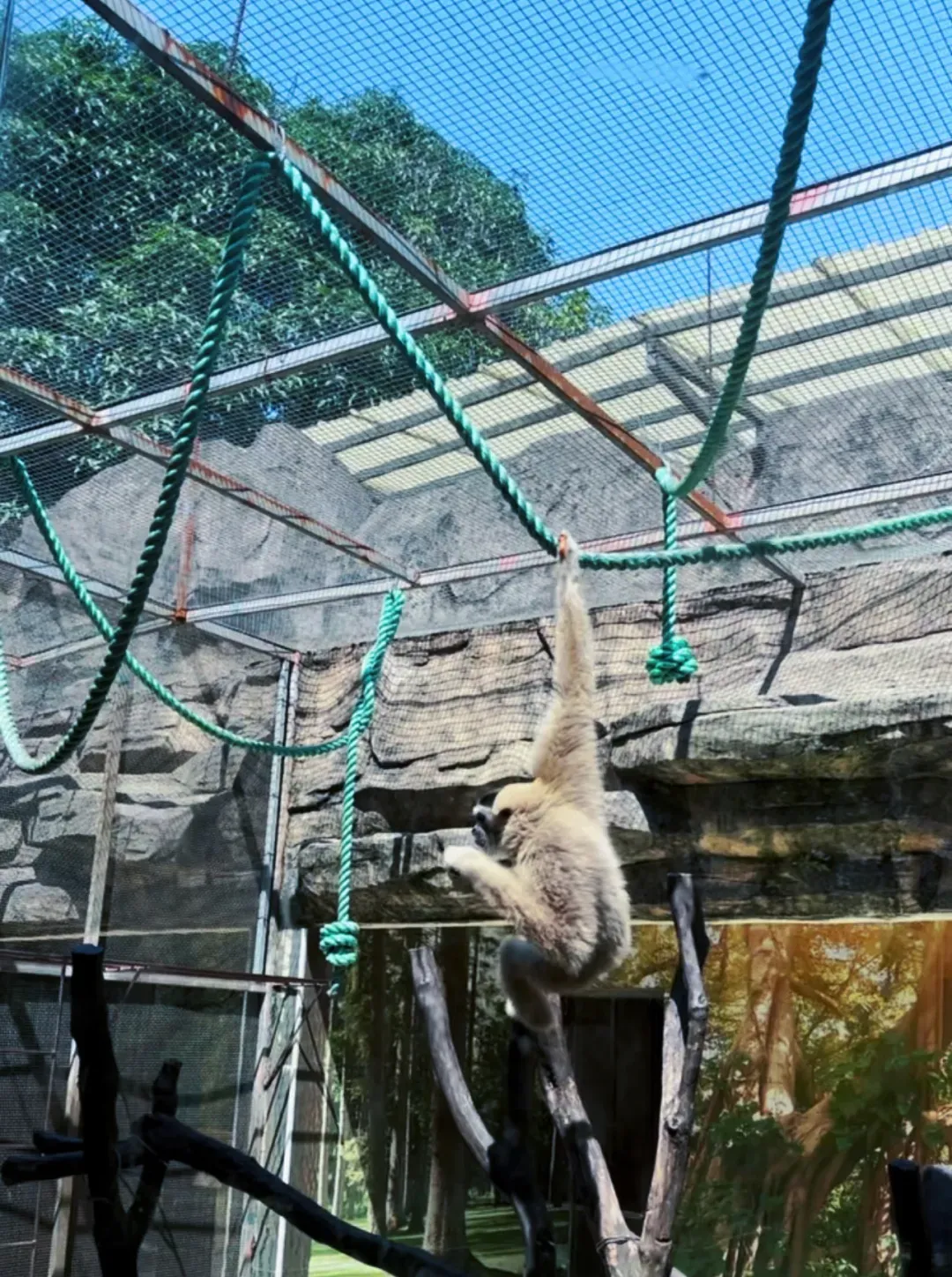继续前行,来到灵长馆,这里是长臂猿的天下。运气好的话,你还能听到它们集体开嗓,白颊、黄颊、戴帽长臂猿轮番 “献唱”,仿佛一场精彩的 “野生音乐会”。