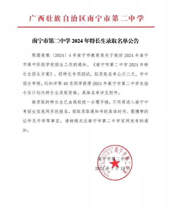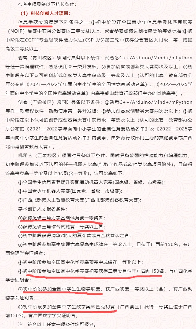 南宁三中在2025年特长生招生简章中表示,招收在科技创新方面有突出特长的学生。