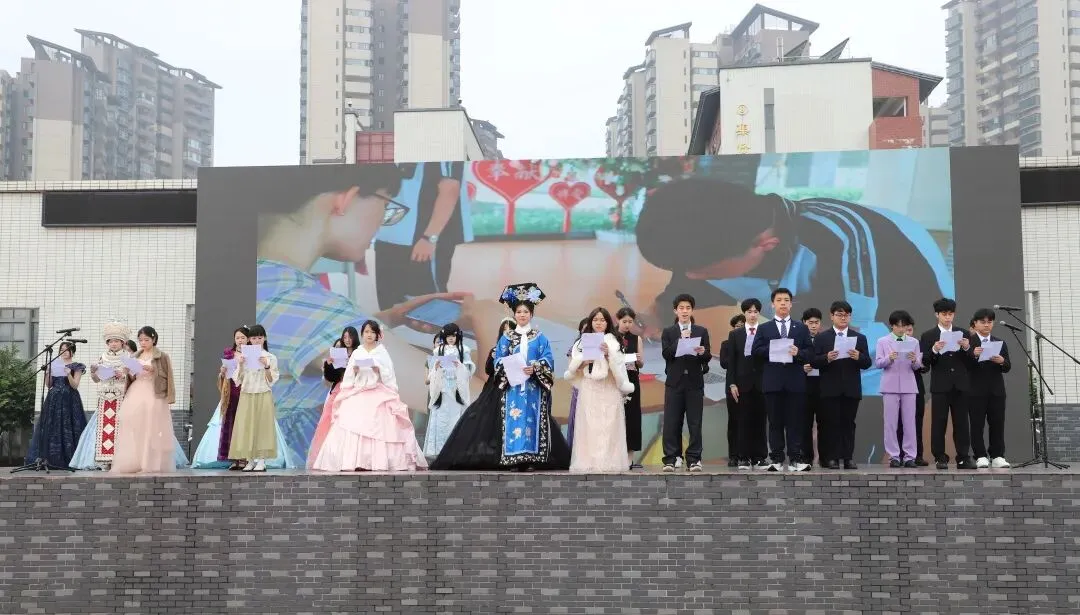 在《时间都去哪儿了》的旋律中,家长与孩子互换书信与礼物,紧紧拥抱。家长为孩子整理衣冠,赠予成人寄语;孩子躬身聆听,深深鞠躬。那一刻,爱在无声中流淌。
