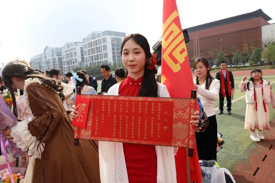 梁正书记强调,成人礼上的“冠笄礼、聆训礼、拜谢礼”,不仅是对中华传统文化的传承,更是对生命来路的深情回望。他感谢家长们将孩子托付给一中,感谢老师们用智慧与爱心点亮学子的求学之路,并勉励同学们铭记亲情与师恩,用行动回馈期待。
