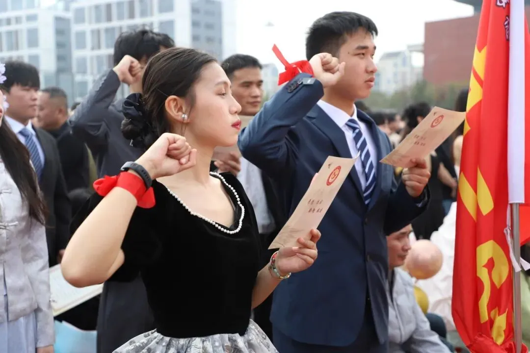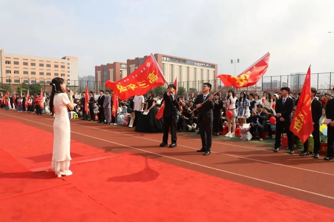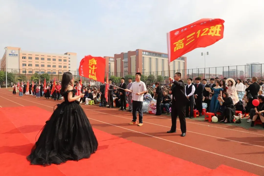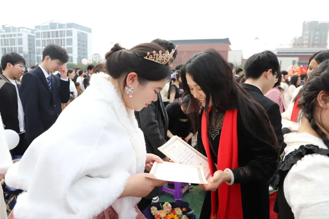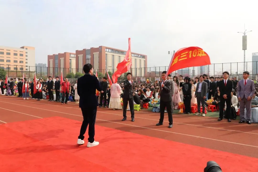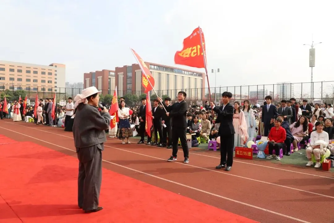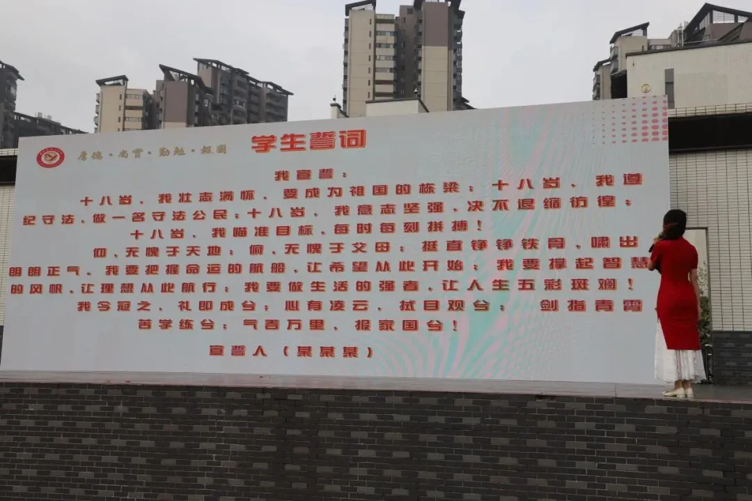 高三合唱团的一曲《爸爸妈妈》,将现场气氛推向高潮。校领导和教师代表为学子们颁发《成人证书》,全体学子在国旗下庄严宣誓,誓言铿锵,字字千钧。