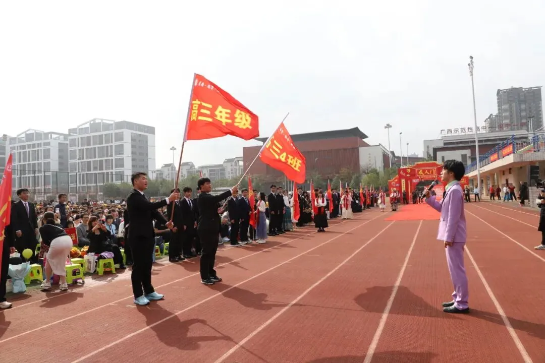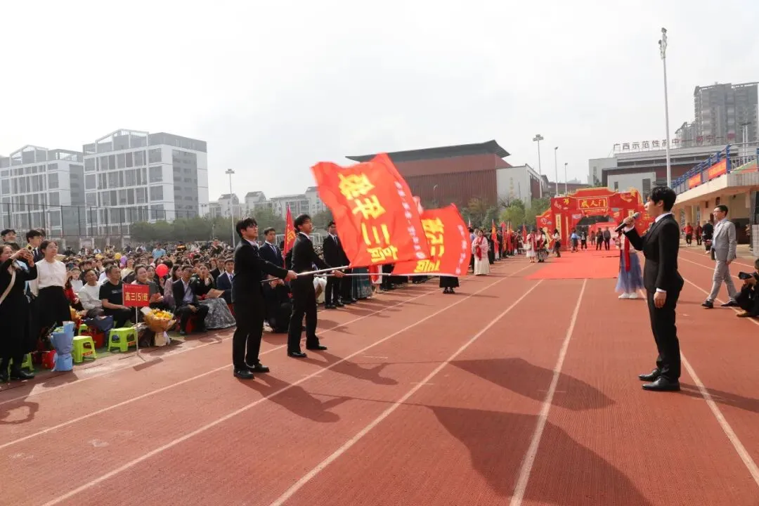 梁正书记指出,十八岁是人生的重要里程碑,意味着从懵懂少年成长为法律意义上的成年人,是家庭的中坚力量和国家未来的希望。在南宁一中“厚德、尚实、勤勉、报国”校训的熏陶下,同学们用三年汗水浇灌青春硕果,从军训场到运动场,从志愿服务到体育赛事,每一个瞬间都在诠释“责任”二字的深刻内涵。成人不仅是年龄的增长,更是心智的成熟;不仅是权利的获得,更是义务的担当。