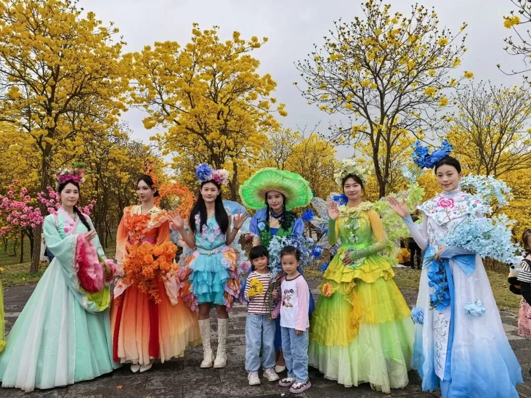 同时,在黄花风铃旅游季期间,景区将在黄花风铃园、樱花园、桃花岛等区域同步开展“花神”巡游活动。身着华丽服饰的“花神”们将穿梭在花丛中,与游客们亲密互动,为市民游客带来多样化的旅游体验。游客们可以与“花神”合影留念,感受这场春日里的浪漫之约。