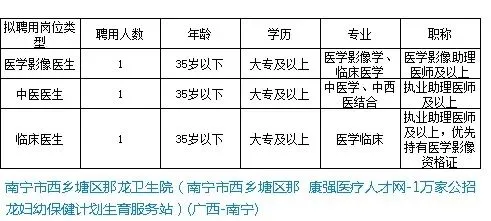 南宁市西乡塘区那龙卫生院公开招聘编外工作人员公告