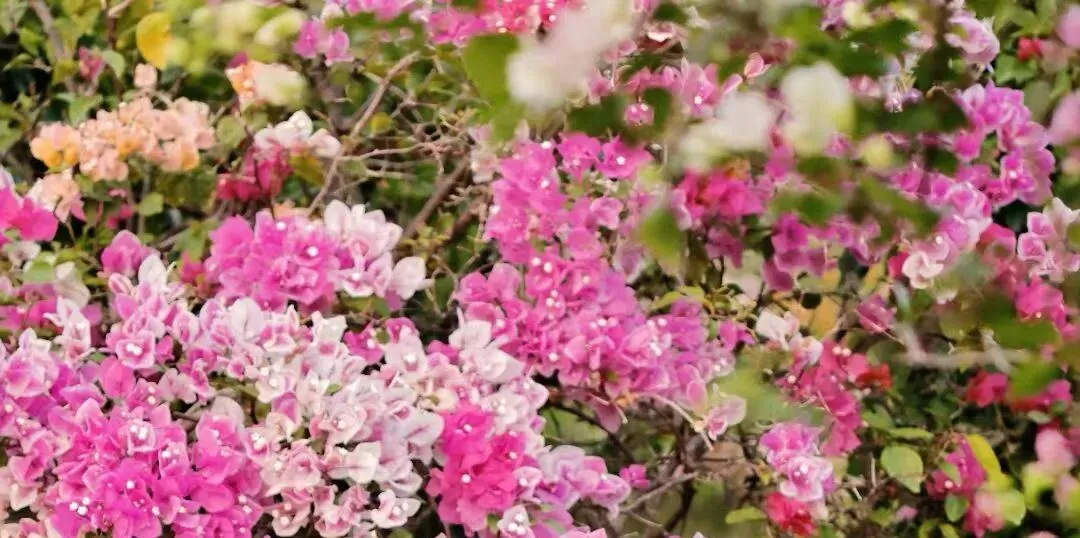 三角梅不管这些。四季轮回里它自顾自地泼辣着,紫的、红的、粉的,像打翻了调色盘。每一天都像是第一次开花,每一次开花都像是最后一次怒放。