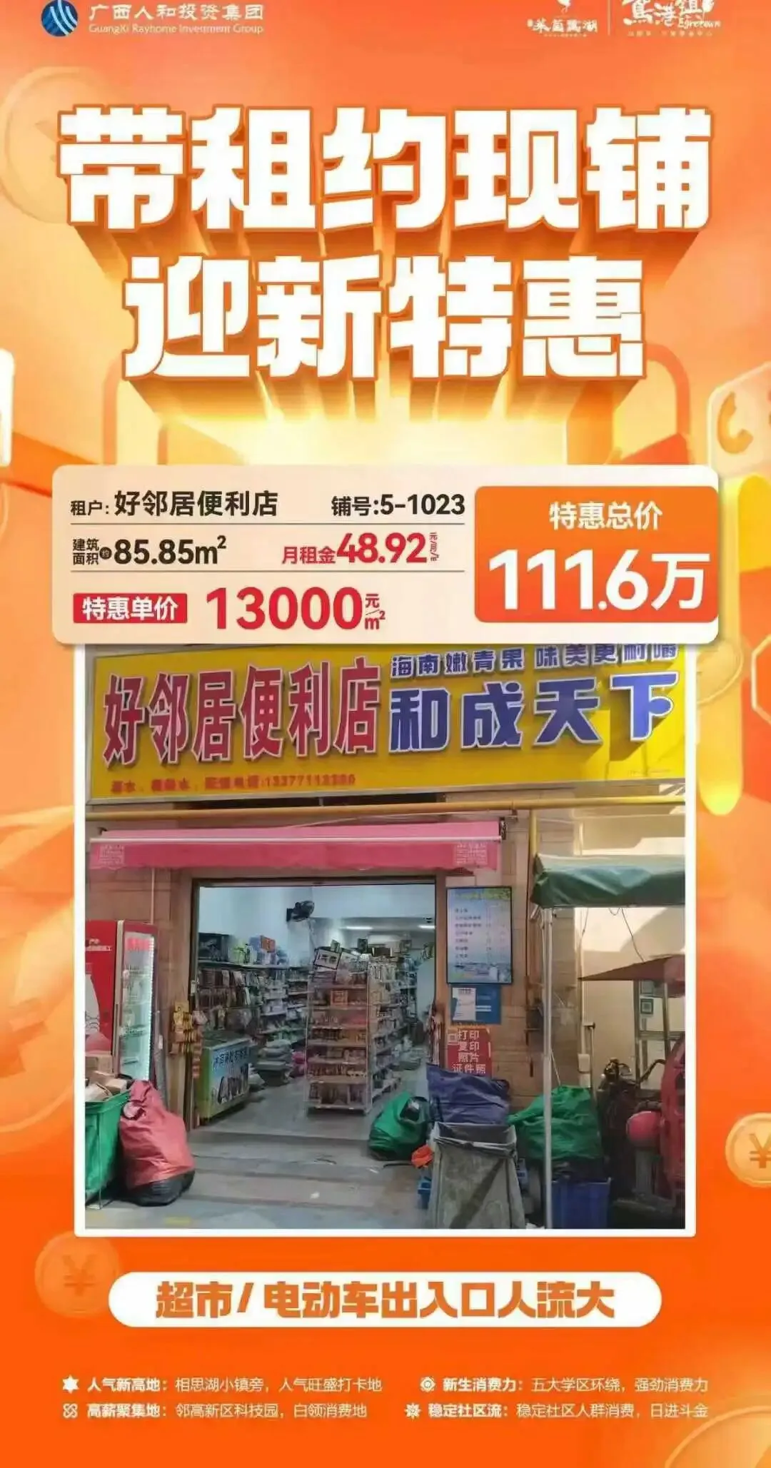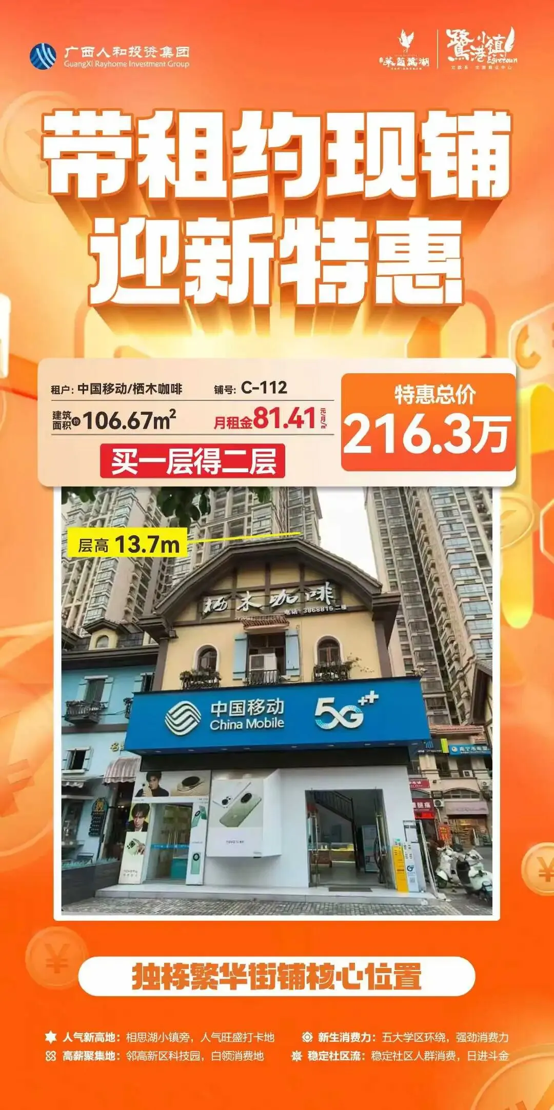 昨天运哥一直说在西乡塘买商铺就选择人和莱茵鹭湖,因为对面就是相思小镇,人流量大,对于买商铺是非常不错的选择。