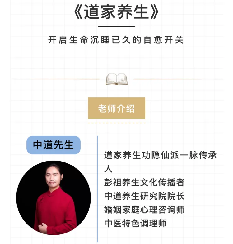 只需要两天时间,直接有效、一学就会、一练就通的古法道家养生功法 ,为您和您的家人提升免疫力 ,开启生命沉睡已久的自愈开关 !