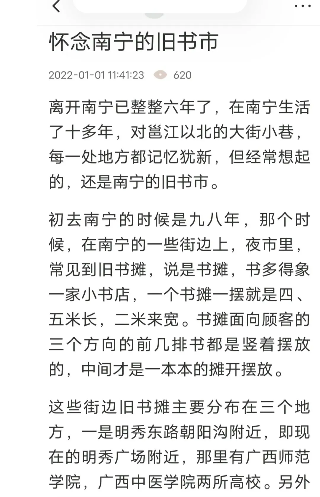 这篇小文是22年写的,当时住在乌鲁木齐,离开南宁已是七年。不经意间,常比较两座城市的不同风格,最让我遗憾的,是乌鲁木齐没有旧书市。前两年回乡下老家,买书自然更不方便了。好在现在可以网购。昨天发文时,起初的打算,并非专写买书,而是写有关网上购物的方方面面,写着写着,单这买书的事,就写成了一篇。今天一想,干脆把当年写的,回忆南宁旧书市的文章找了出来,发在这里,当成昨天那篇的前传。