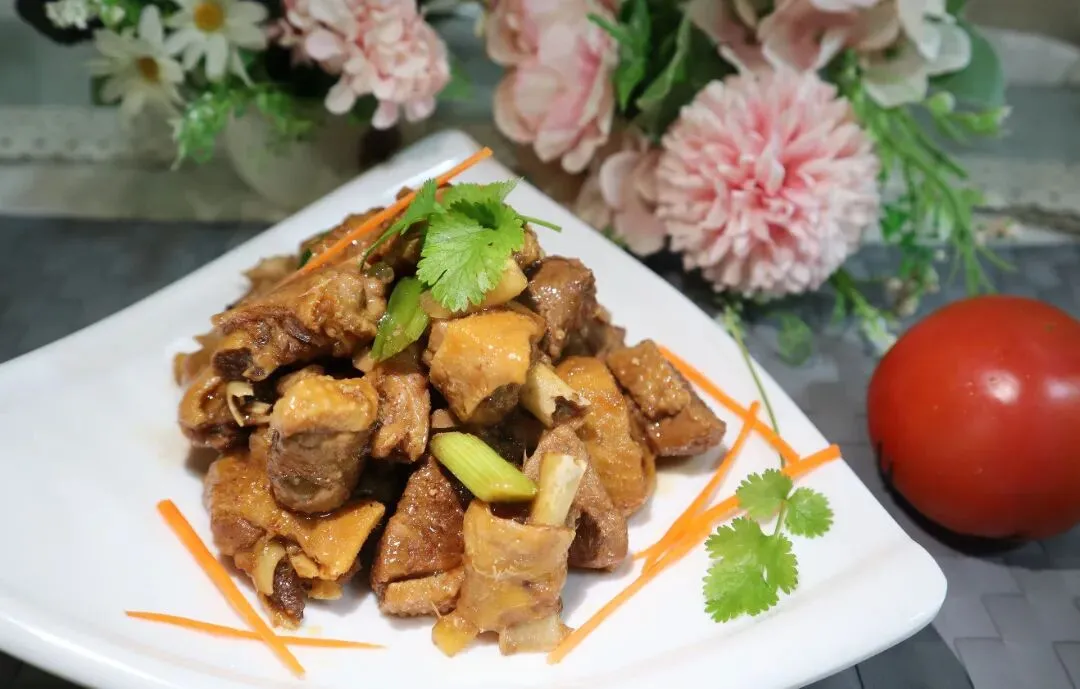 午 餐:香菇滑鸡、葱香肉末豆腐、蚝油生菜、春笋筒骨汤、南瓜米饭