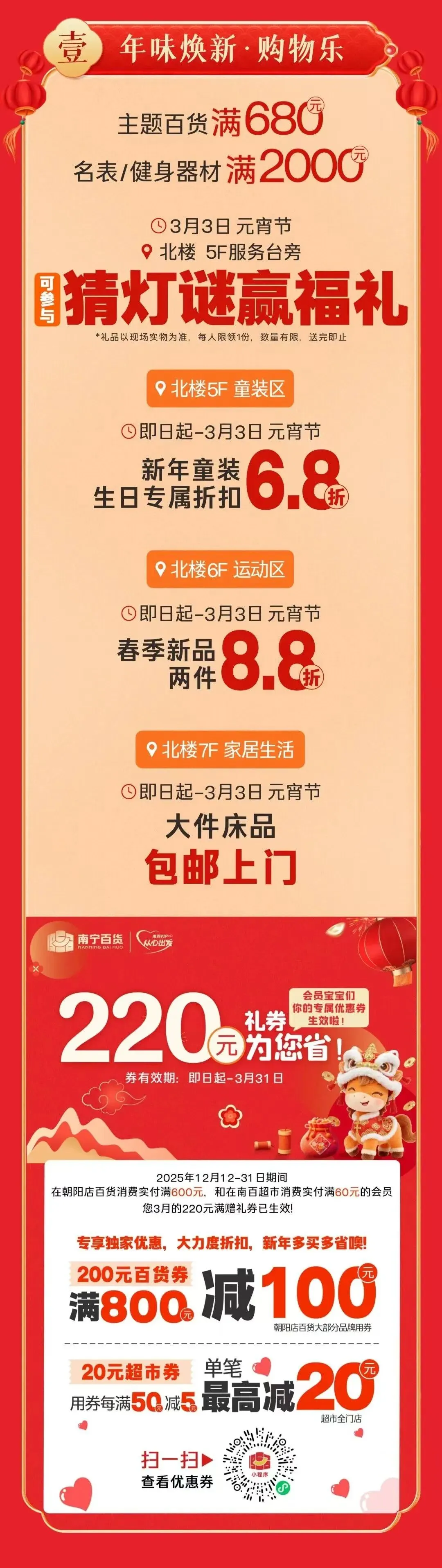 1.3月3日主题百货满680元或名表/健身器材满2000元可参与猜灯谜赢福礼。