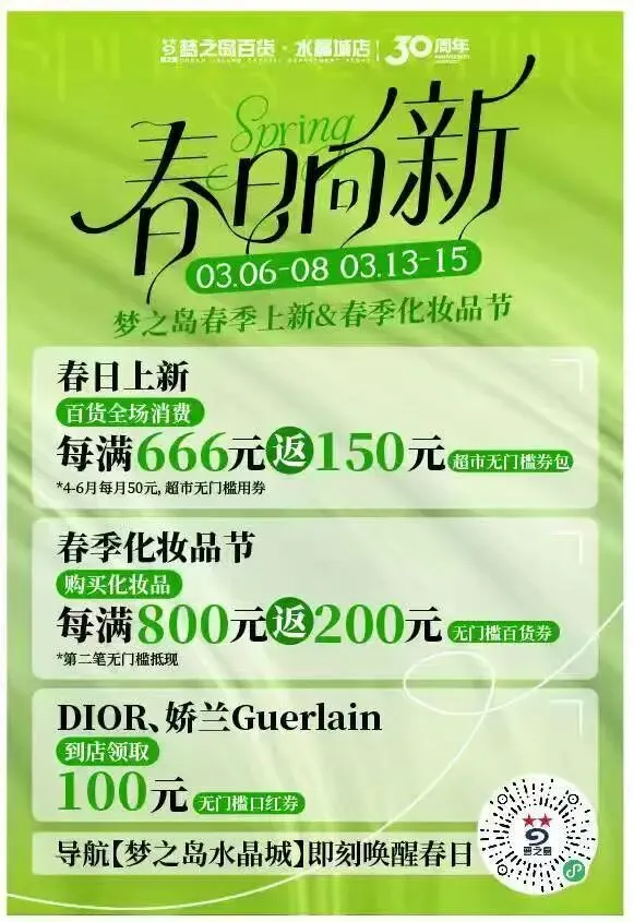 3.即日起至3月9日,ARMANI限时快闪,全场低至2折。消费满5000元赠送200元加油卡。200+品牌钜惠折扣。