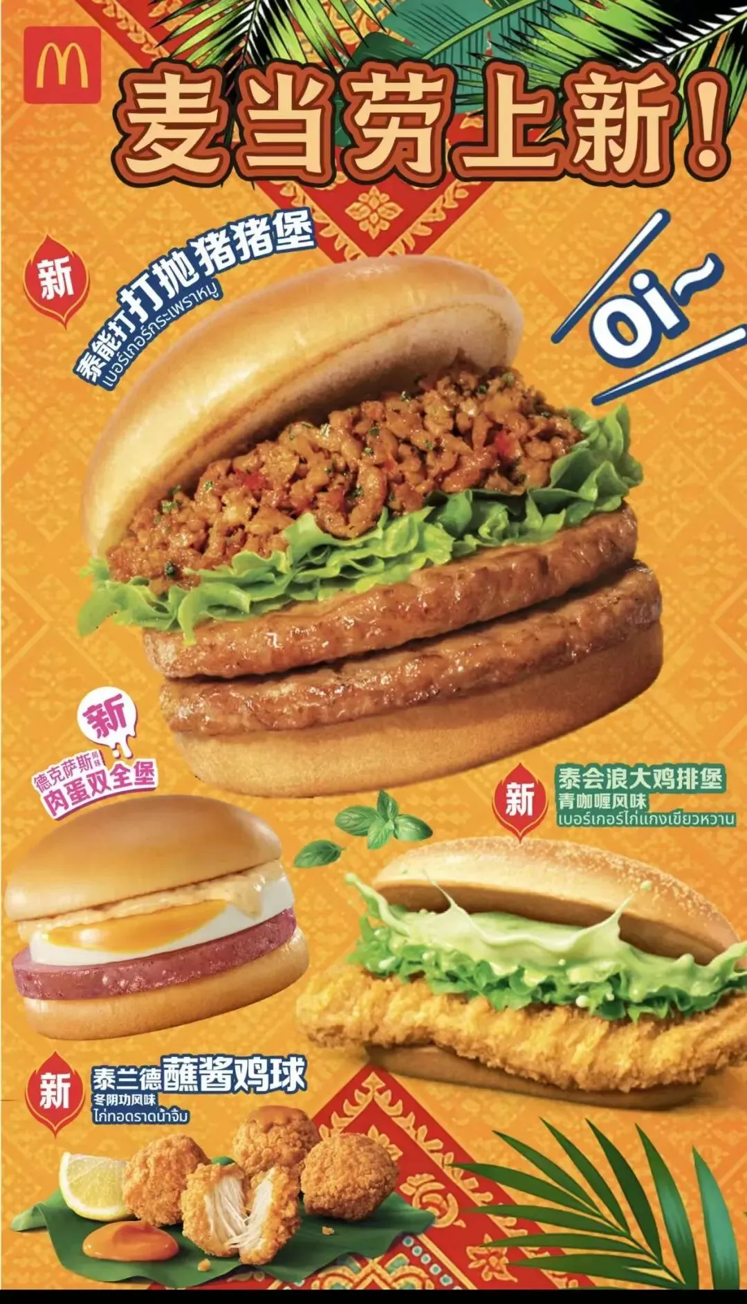 3.泰会浪大鸡排堡限时加入大堡口福三件套。青咖喱风味泰会浪大鸡排堡,正宗青咖喱酱,浓郁椰奶香,清新开胃,再搭配全新大波浪鸡排,厚嫩扎实,爽吃三件套22.9元起!