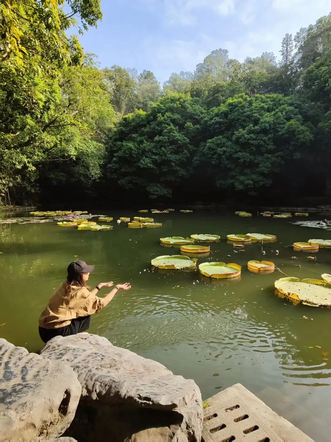 3. 水生花园:夏日睡莲、王莲绽放,湖面倒映绿植,妥妥的南宁版莫奈花园,低角度拍能出“人在花中”的效果。